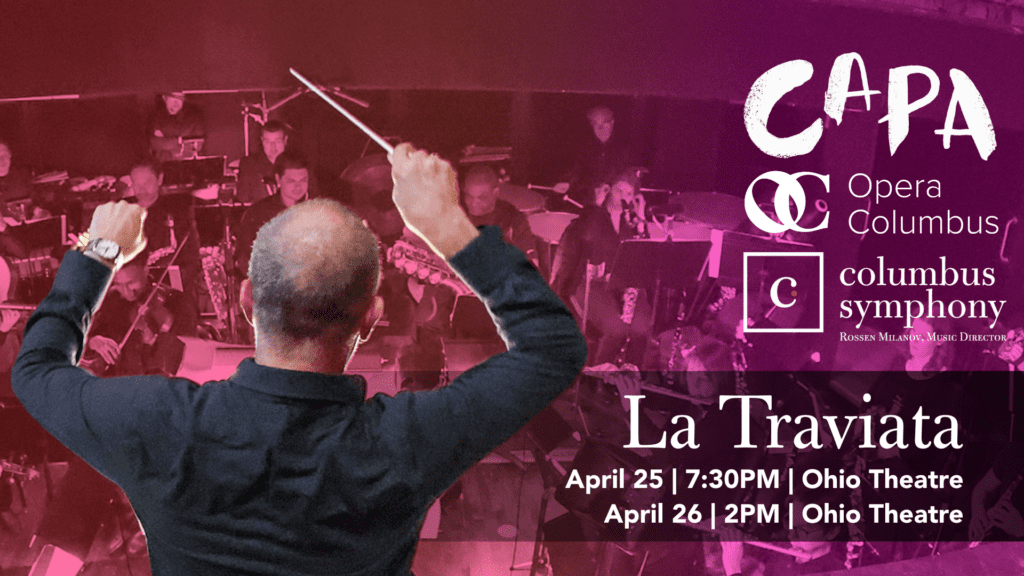 In a co-production with the Columbus Symphony Orchestra, CAPA and Opera Columbus. Composed by Giuseppe Verdi and inspired by Alexandre Dumas Fils’s play La Dame aux camélias, La Traviata unfolds as a poignant tragedy. Officially the most performed opera worldwide, La Traviata is Verdi’s twisting love story that explores class, reputation and devotion, with heartbreaking consequences. The story centers on Violetta Valéry, a celebrated courtesan who discovers true love in the arms of Alfredo Germont. However, social pressures and Alfredo’s disapproving father compel her to renounce their love for the sake of his family’s reputation. Overcome by heartbreak and illness, Violetta ultimately finds her way back to Alfredo, but their reconciliation comes too late—she dies in his arms, underscoring the opera’s powerful themes of love, sacrifice, and societal judgment.